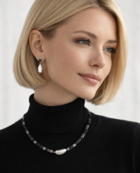Stříbrná souprava s hematitem a barokní perlou, náhrdelník a náušnice, ..