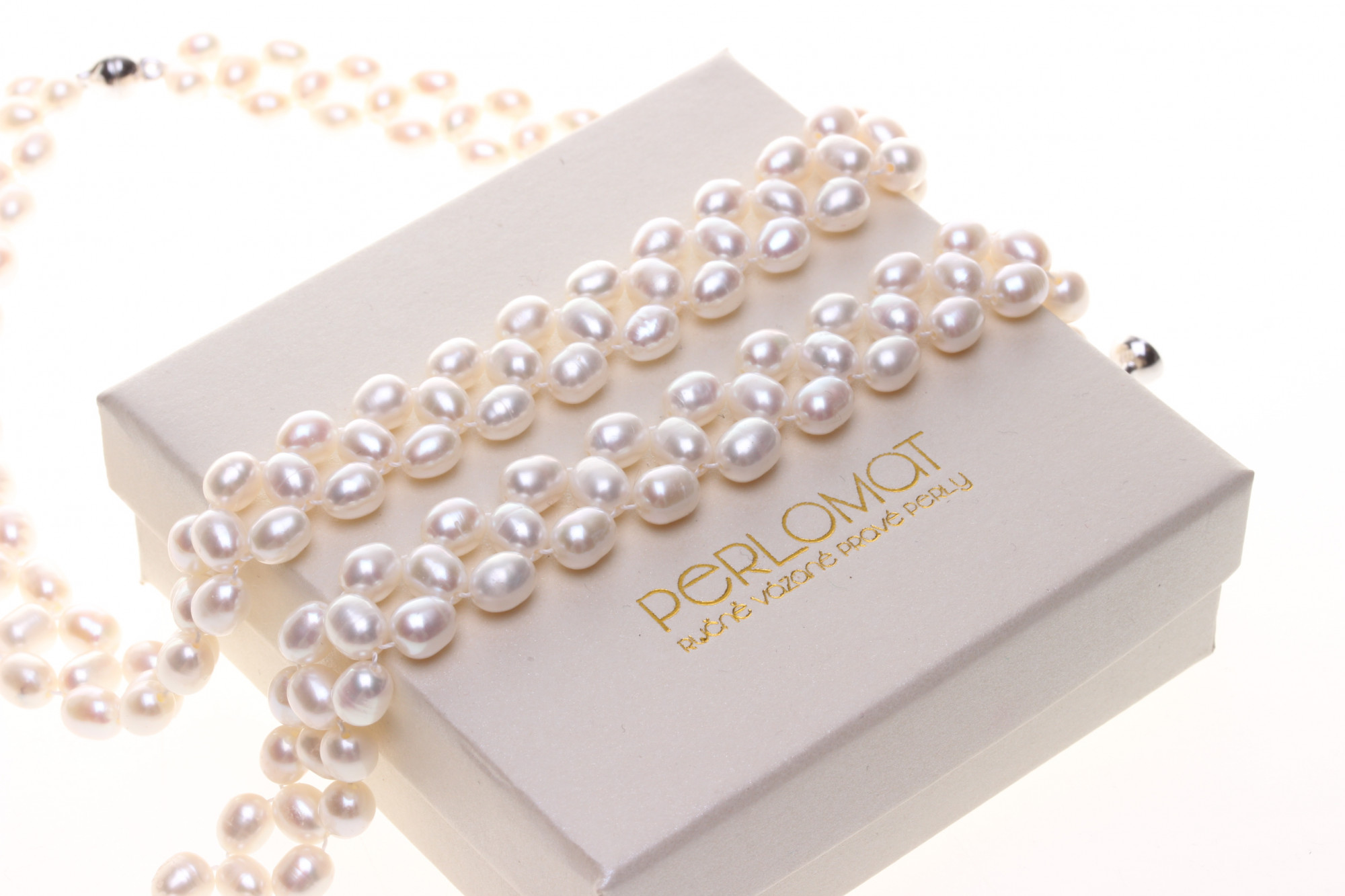 Perly jsou pečlivě ručně vybrané, s hladkým povrchem a vysokým přirozeným leskem. Každý kus je ručně zhotoven s důrazem na detail, pohodlí při nošení a dlouhou životnost šperku. Perly jsou navlečené na hedvábí, šperky jsou měkké a splývavé na dotek, ačkoliv šperk obepíná šíji, je pohodlný.