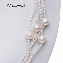 Perlový náhrdelník bílý s bílou, rope, perly 2+8 mm, 175 cm