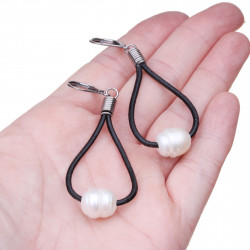 Jednoduché a nadčasové náušnice v boho stylu jsou vyrobené z přírodní lakované kůže a sladkovodních kultivovaných perel. Mechanika náušnic je klapací z nerezové oceli. Měla by tak být vhodná i pro alergiky. Délka náušnic je 5-7 cm. V případě záju můžeme osadit i na afroháček. U lakované kůže buďte opatrní s delším vystavením náušnic vodě, zvlhlá lakovaná kůže může popraskat. Šperk obdržíte v dárkovém balení s certifikátem původu.