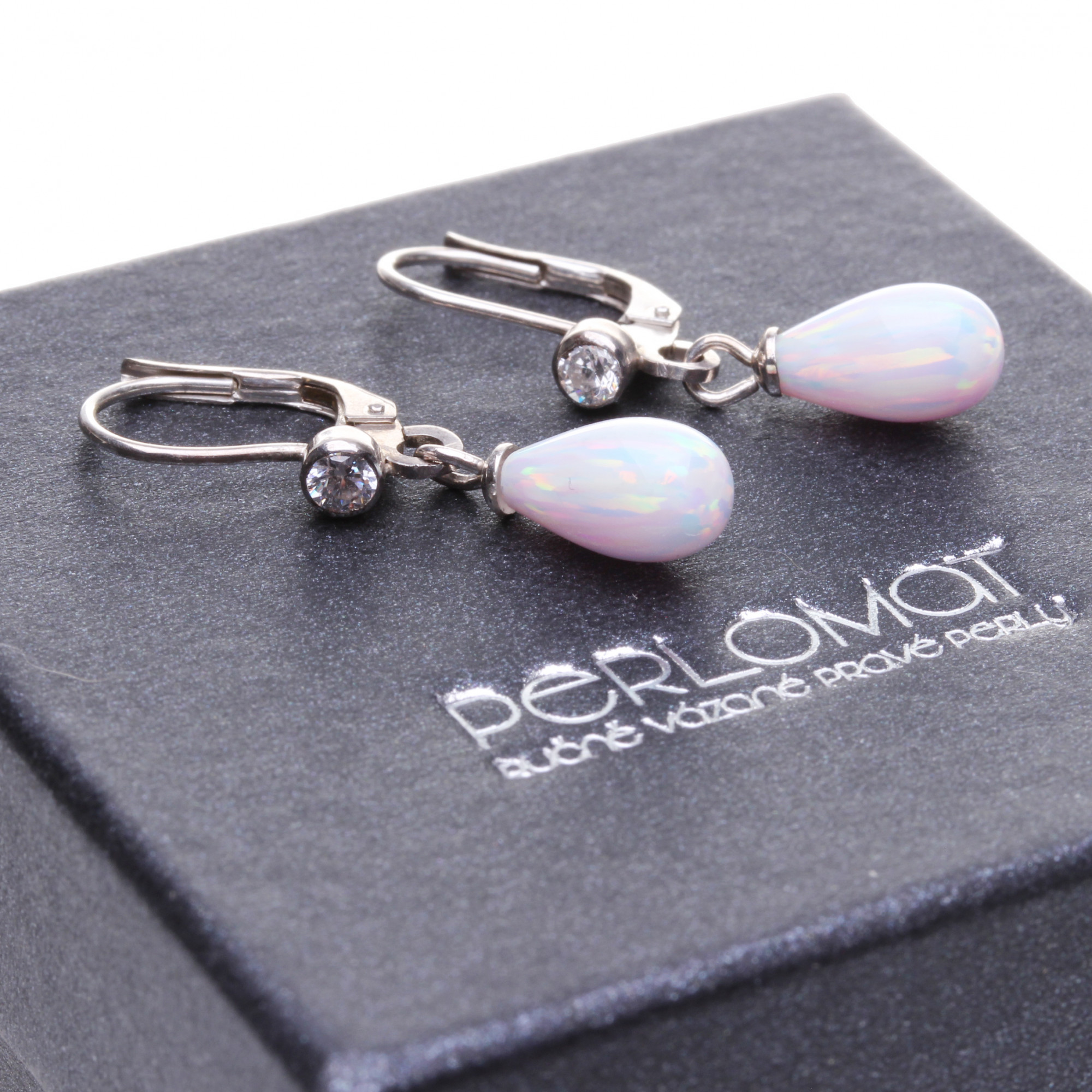 Elegantní stříbrný set tvoří přívěsek a visací náušnice, které jsou osazeny párem bílých kapek laboratorních opálů a kubických zirkonů. Délka náušnic je téměř 3 cm. Přívěsek je dlouhý 2 cm. Samotné opálové kapky jsou dlouhé 11 mm. Šperk dostanete v dárkové papírové krabičce s certifikátem původu.