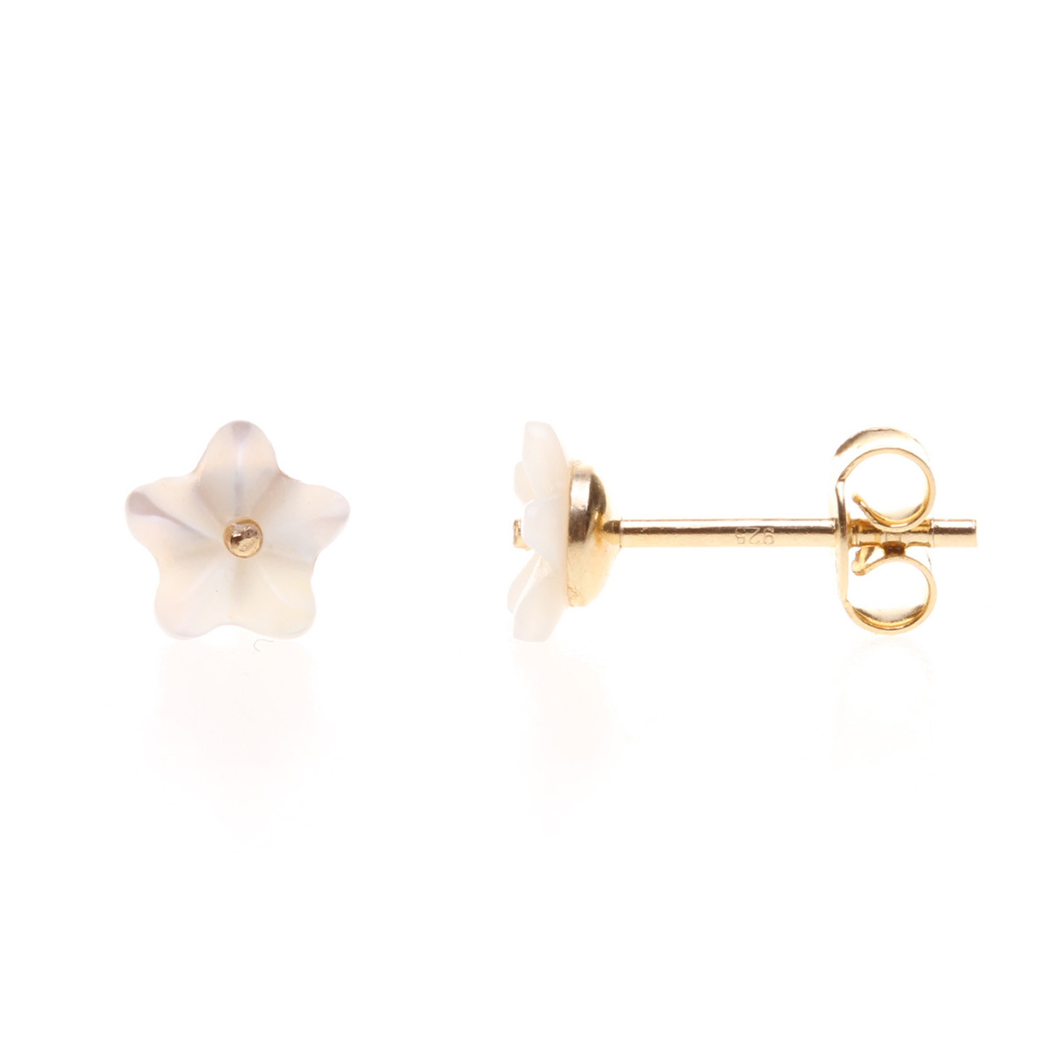 Velice jemné a něžné perleťové puzetky ve tvaru bílých květinek jsou ideální volbou pro nevěsty ke svatebním šatům, pro družičky a právě tak pro všechny romantické duše. Květy mají průměr 6 mm. Náušnice jsou osazeny na stříbrné zlacené puzety, zn. Ag 925. Náušnice dostanete v dárkovém balení s certifikátem původu.