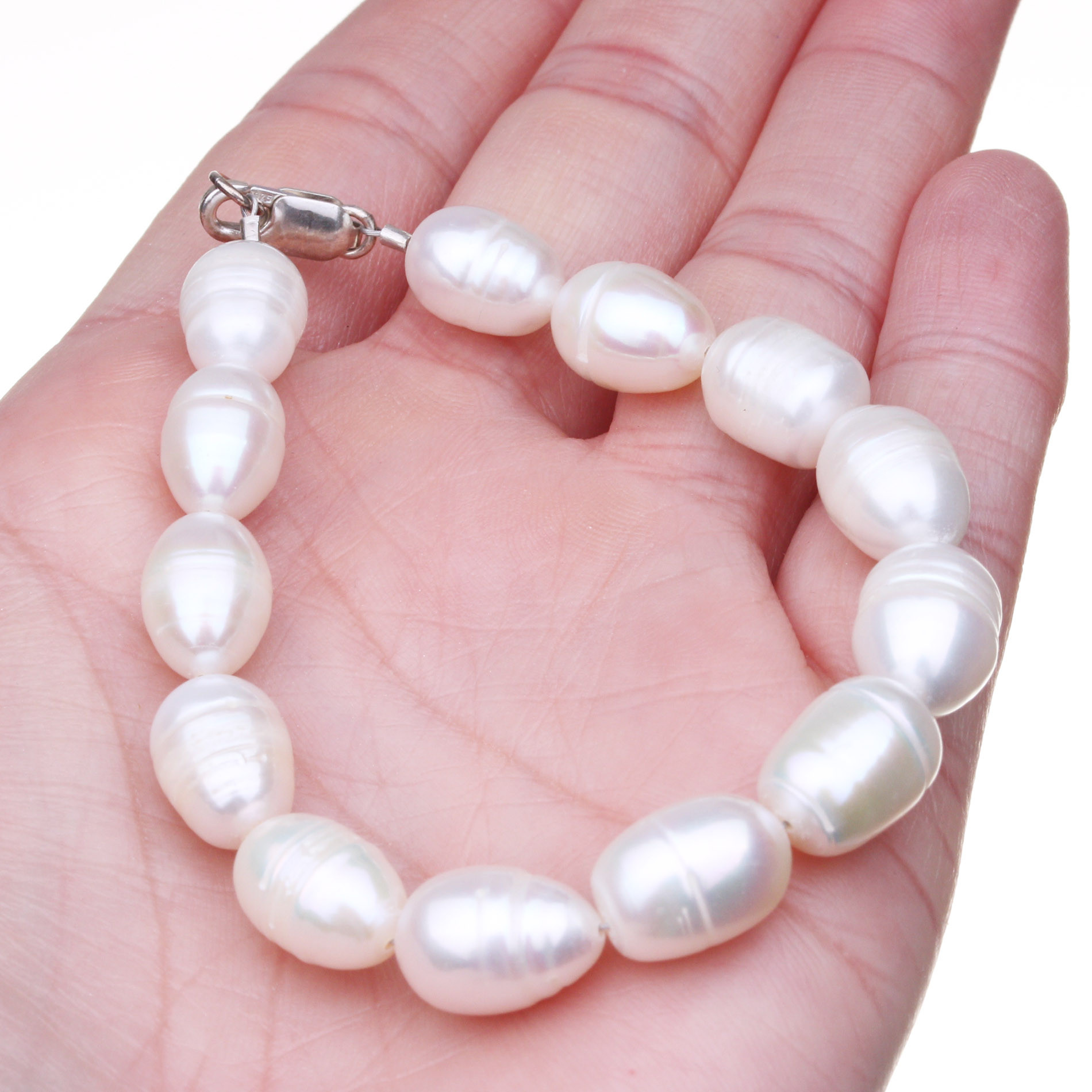 Jemný perlový náramek o délce 19 cm je uvázaný ze sladkovodních velkých rýžových perel o vel. 9x12 mm. Perly mají podlouhlý tvar, jsou rýhované, mají jemný lesk a místy nedokonalosti. Náramek je navlečený na ocelovém lanku. Zapínání je provedené z pravého stříbra, značené ryzostní značkou 925. Perly od nás dostanete v dárkovém textilním sáčku společně s certifikátem.