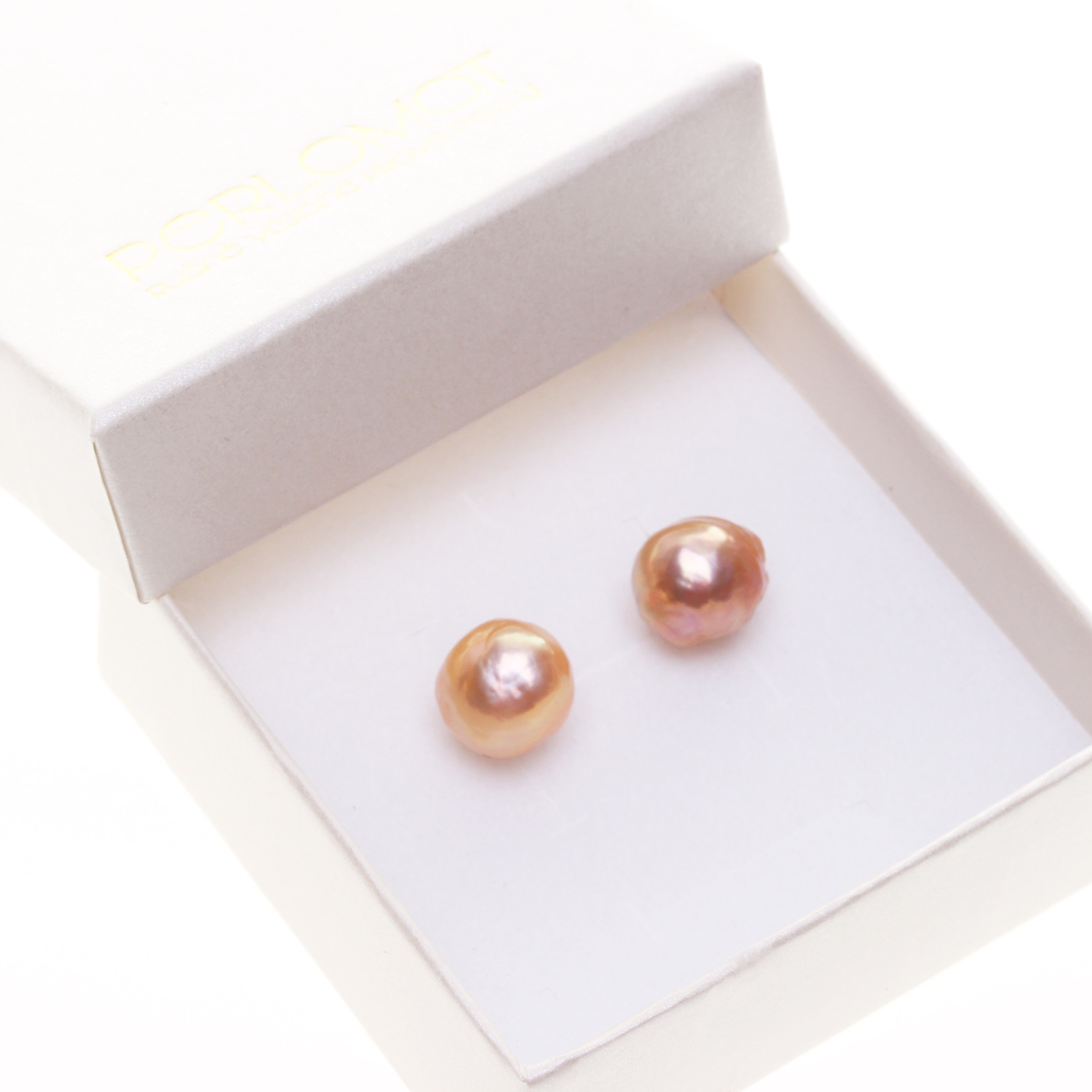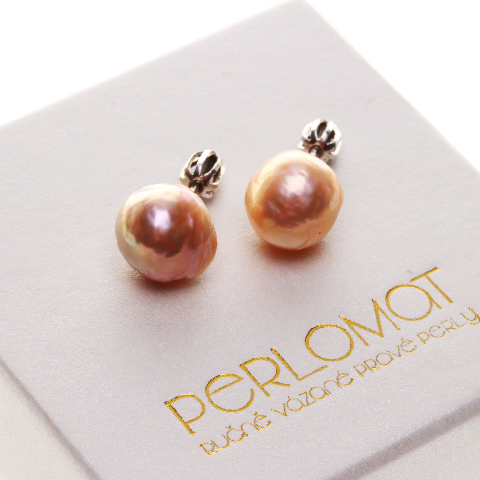 Pár jedinečných perlových náušnic ze sladkovodních perel Kasumi, které okouzlují svými teplými broskvovo-lila odstíny a přirozeným perleťovým leskem. Každá perla je originál – svým tvarem, kresbou i odlesky připomíná drobný přírodní zázrak. Perly o velikosti 10–11 mm mají barokní tvar, díky němuž působí přirozeně, živě a osobitě. Kasumi perly jsou vzácné kultivované perly pěstované na jádru, které vynikají svou velikostí a bohatou barevností – každý pár je neopakovatelný. Perly jsou osazeny na rhodiovaném stříbře Ag 925/1000 s precizním šroubovacím zapínáním, které zajišťuje bezpečné a pohodlné nošení. Balónky jsou oblíbené díky možnosti pevně utáhnout perlu k lalůčku. Zapínání drží a neztratíte je.