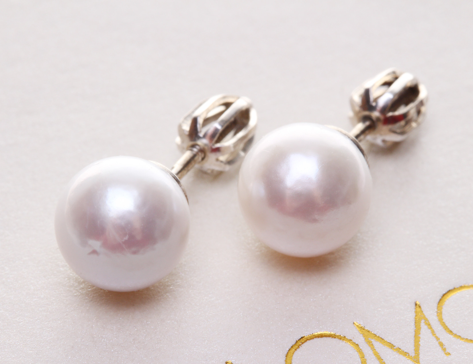 Perly o průměru 7,8 - 8,5 mm jsou polovrtané a lepené na rhodiované stříbro Ag 925/1000, které je chráněné proti zčernání a vhodné i pro alergiky.