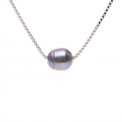 Jedna perla na stříbrném řetízku, šedá 42 cm, Ag 925/1000