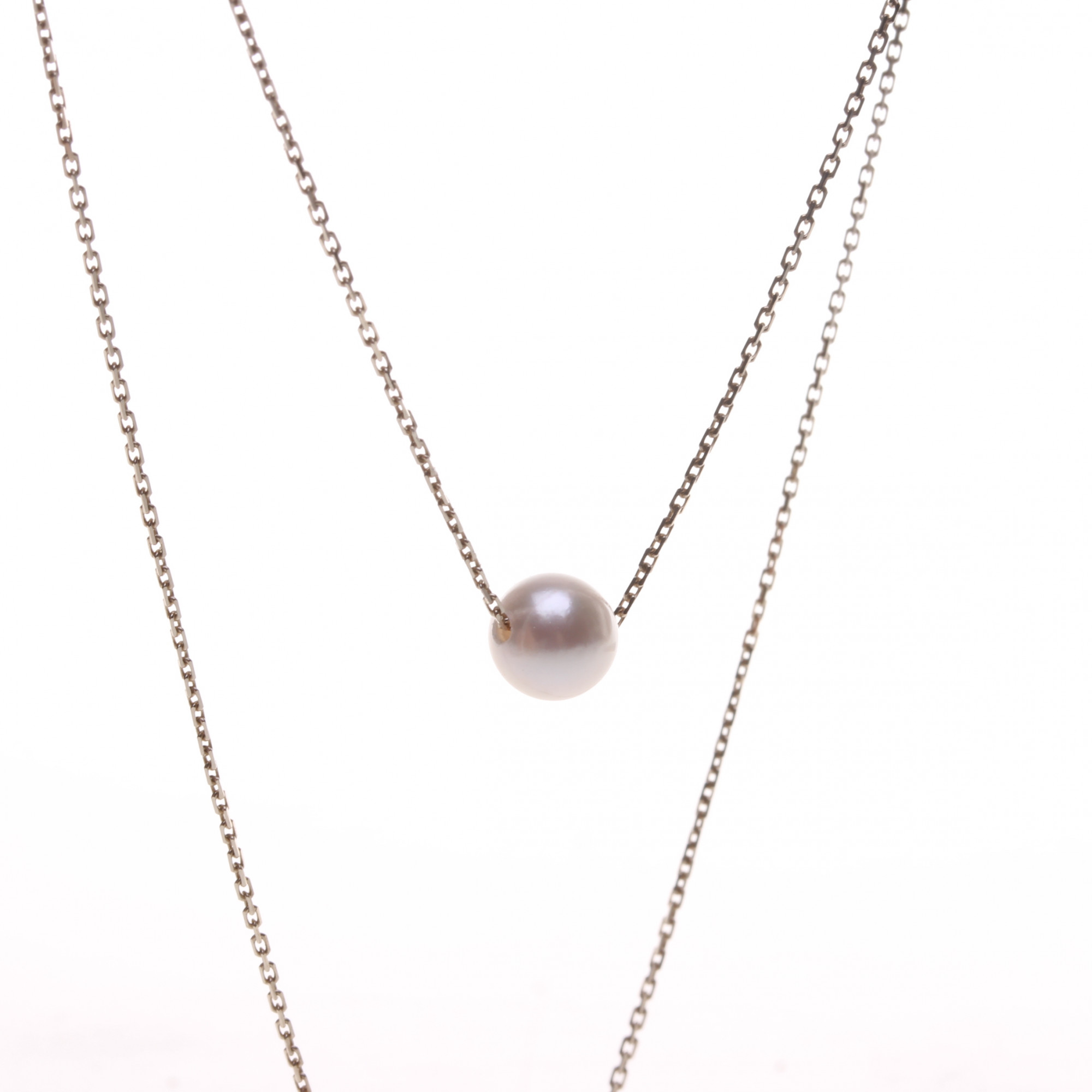 Jemný a elegantní perlový náhrdelník "jedna perla" tvoří krásná kulatá perla jakosti AA navlečená na stříbrném řetízku. Perla je o velikosti 7 - 7,5 mm, je hladká, jen vzácně může mít jednu až dvě drobné nedokonalosti, s pěkným leskem. Stříbrný řetízek (Ag 925/1000) je opatřen tak, aby z něj perla nemohla vyklouznout. Délka řetízku je 41 cm. Řetízek prochází perlou v celku a nehrozí tak jeho vyvléknutí. Konkrétní typ řetízku se může lehce měnit dle aktuálních skladových zásob. Značeno ryzostní značkou 925.