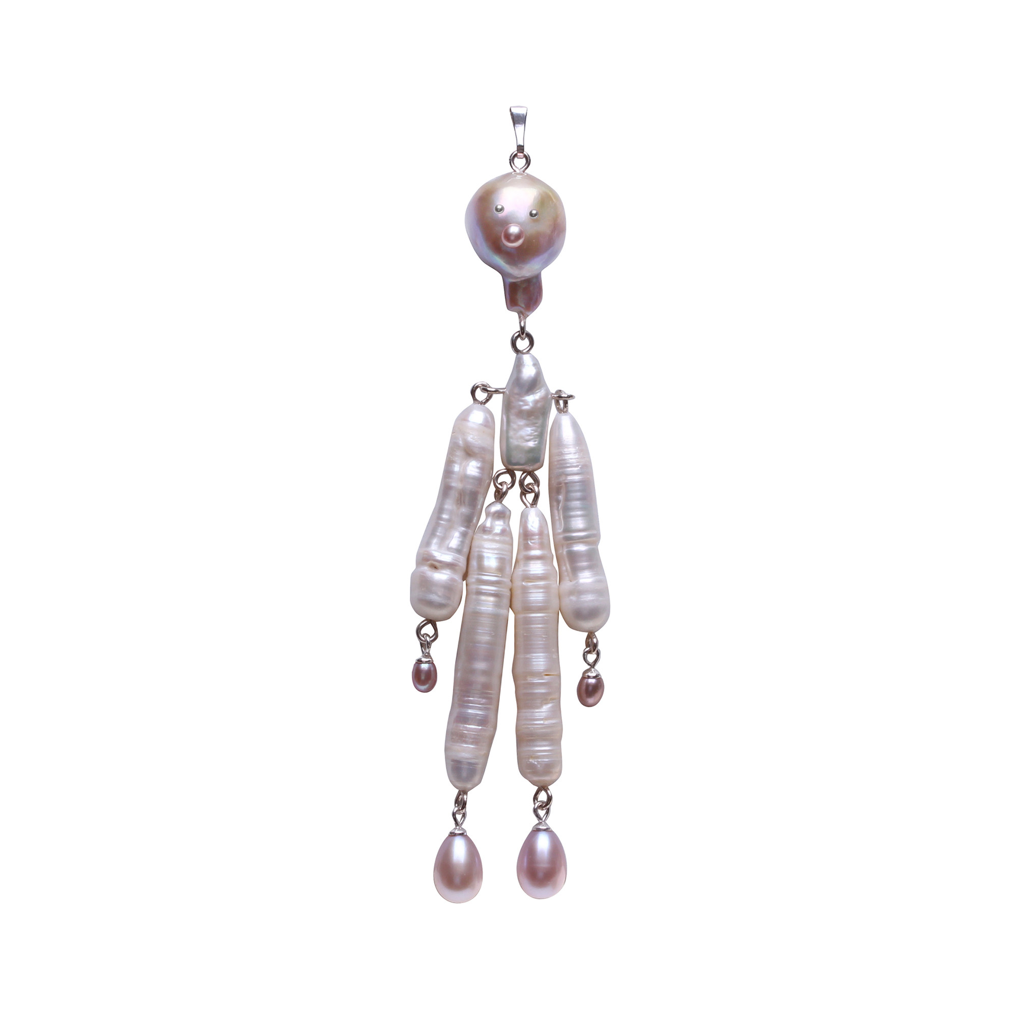 Roztomilý perlový přívěsek Harlekýna ze sladkovodních perel typu kasumi a biwa vám bude rád dělat společnost. Celková délka přívěsku je téměř 12 cm. Závěs a klouby panáčka jsou vyrobeny ze stříbra Ag 925/1000. Celková hmotnost přívěsku je 23,7+2,9 gramů. Přívěsek je doplněn řetízkem typu Veneziana o délce 50 cm - použili jsme hladký řetízek čtvercového průřezu, protože přívěsek je relativně těžší. Harlekýnovi to sluší výborně ke každodennímu outfitu k hladkému jednobarevnému svetru a elegantním kalhotám, i k tričkovým šatům. Působí mladistvě a hravě. Šperk bdržíte v dárkovém balení s certifikátem původu.