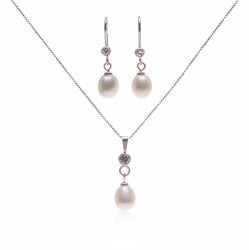 Perlový set bílý, kapky 9,5 a 11 mm, řetízek 45 cm, Ag 925