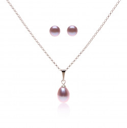 Perlový set růžový, kapky, řetízek 45 cm, stříbro Ag 925