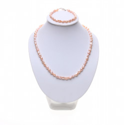 Perlová souprava růžová, rýžové perly 9 mm, 39+17 cm, Rh Ag 925