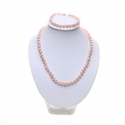 Perlová souprava růžová AA 6,5 mm, 41+18 cm, Rh Ag 925