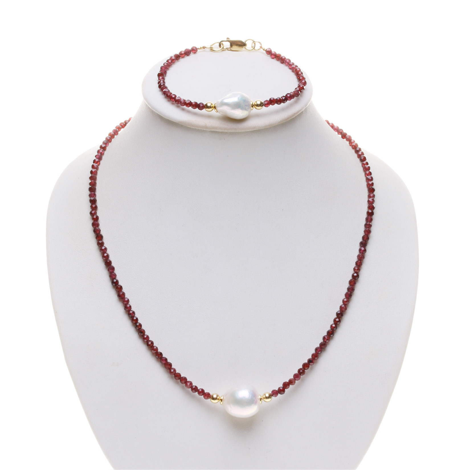 Tato dvoudílná souprava z kolekce Granát & Kasumi ztělesňuje ženskost a decentní luxus. Náhrdelník a náramek tvoří harmonický celek, který působí elegantně a slavnostně.