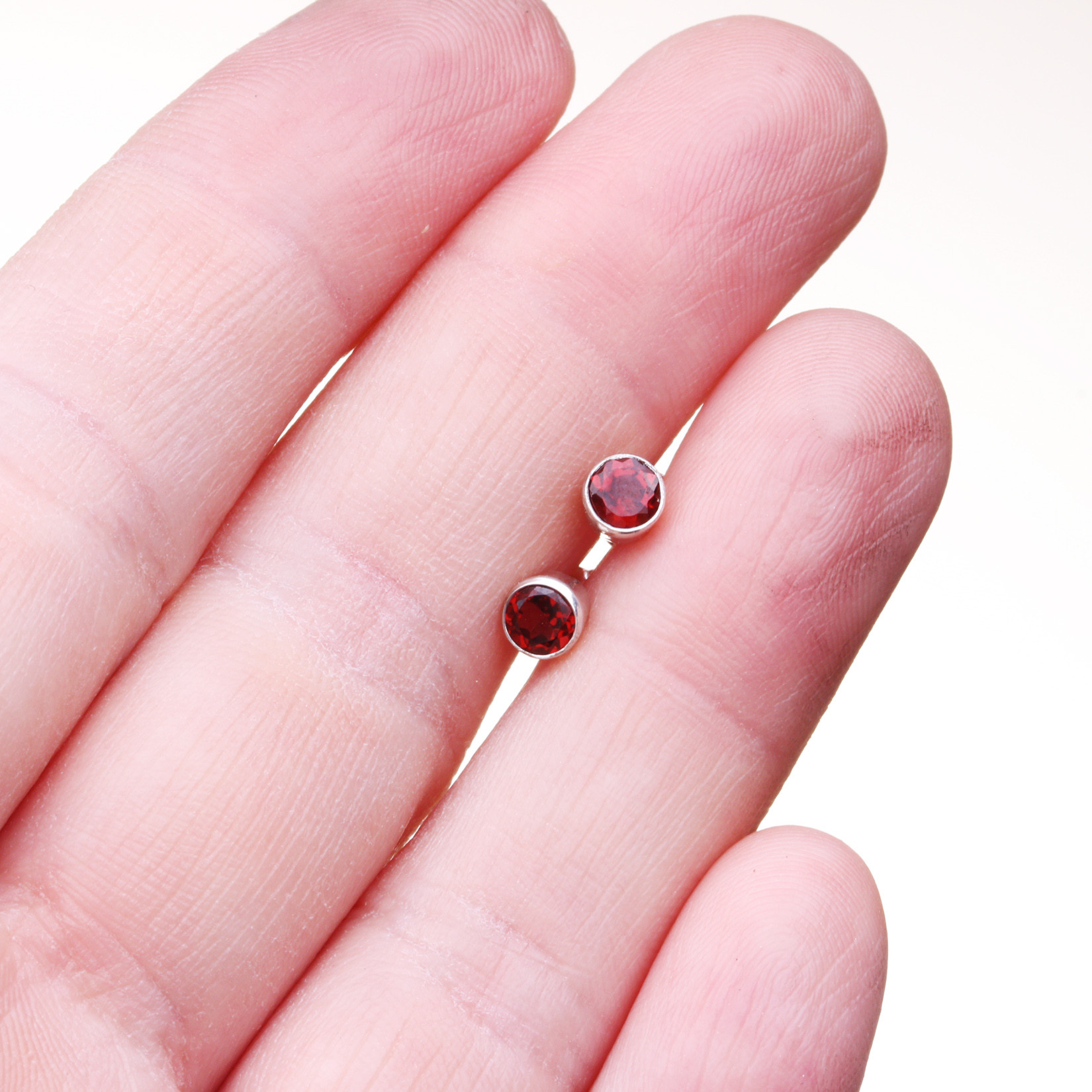 V náušnicích jsou do stříbrné obruby osazeny kulaté klasicky fasetované almandiny nejvyšší jakosti o průměru 4 mm. Zapínání náušnic je na pevnou puzetku, stříbro je rhodiované.