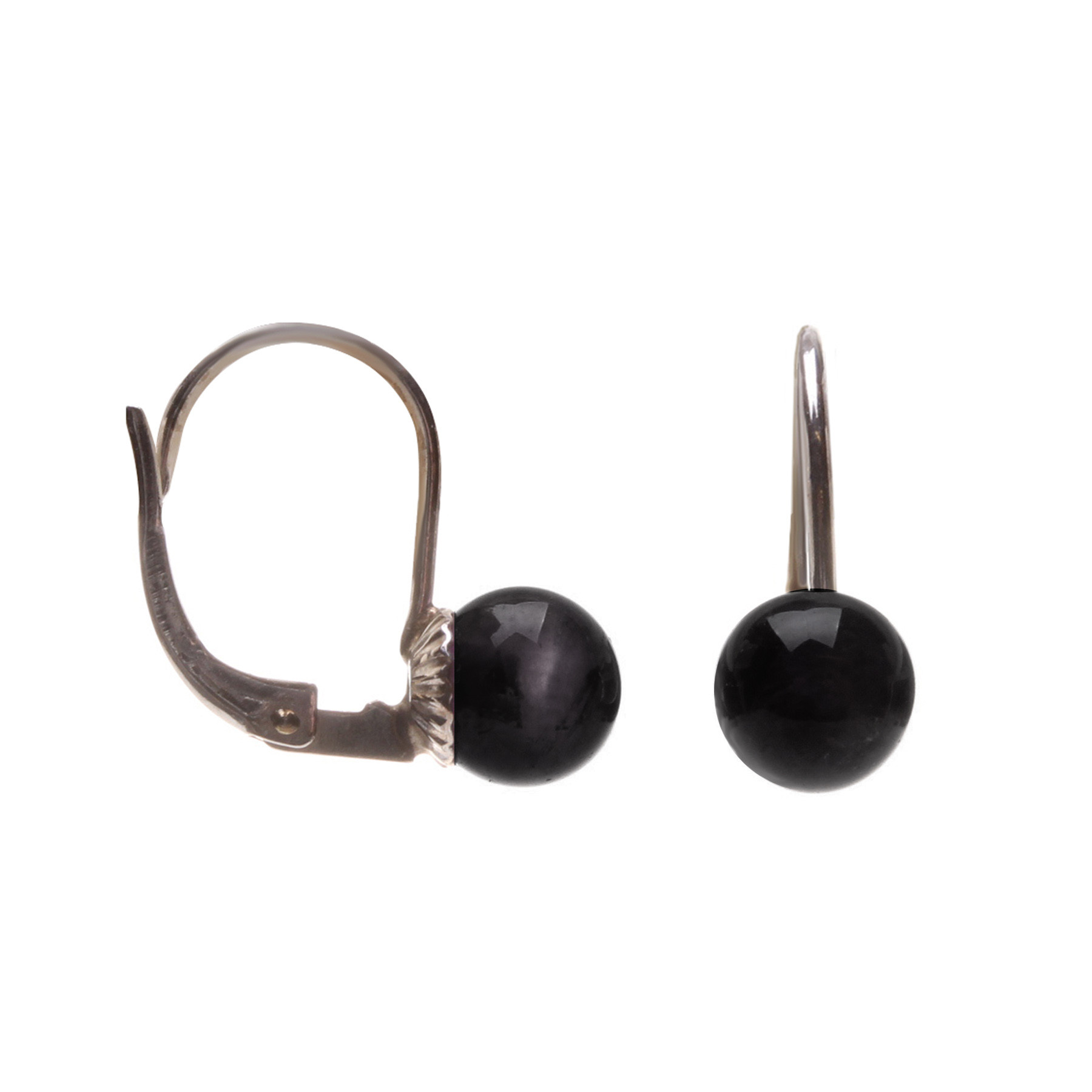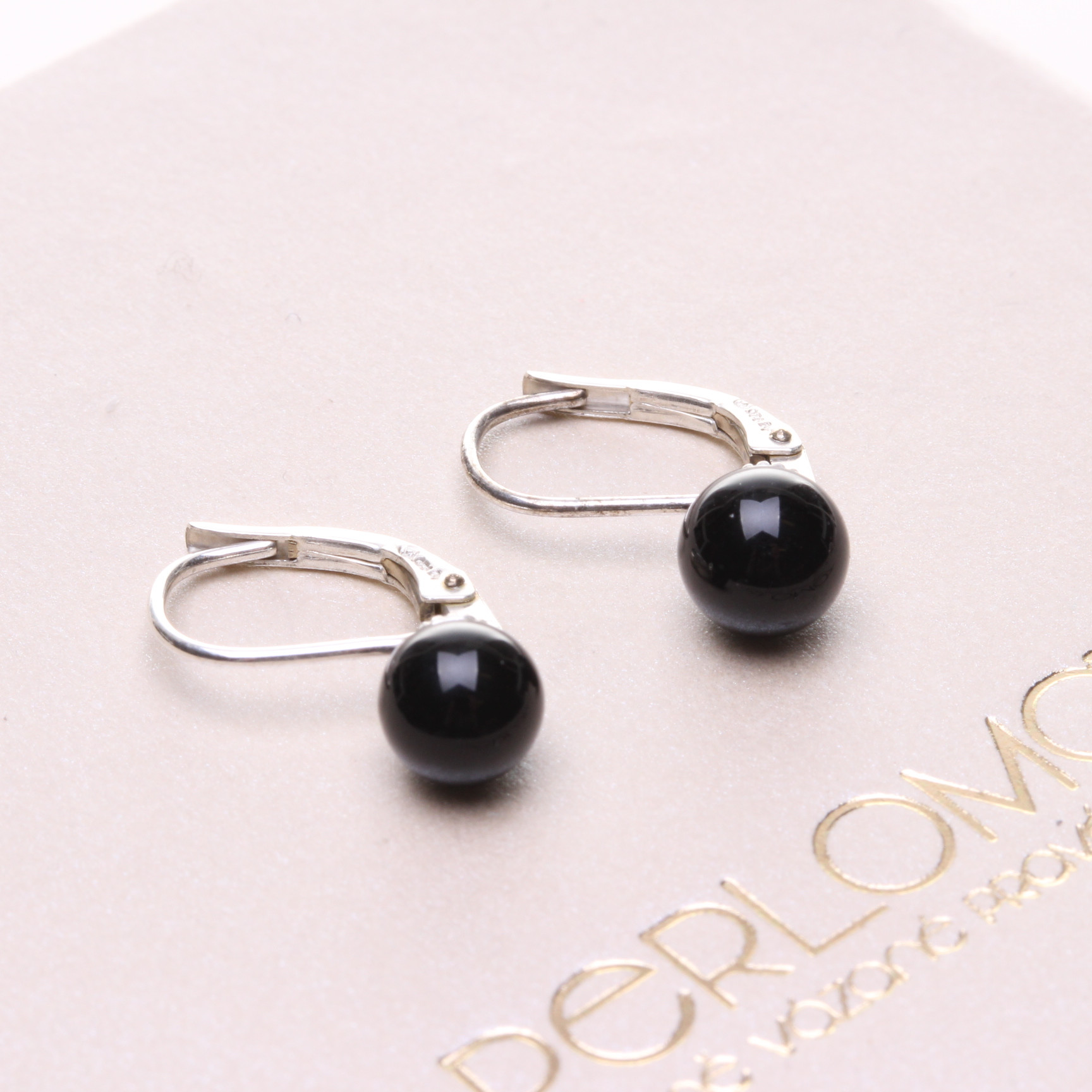 Stříbrné náušnice jsou osazené černou fasetovanou onyxovou kuličkou o vel. 6 mm. Kuličky jsou podloženy obrubou a francouzký háček je zajištěný klapačkou, která dobře drží. Všechny stříbrné komponenty jsou ryzosti 925/1000.