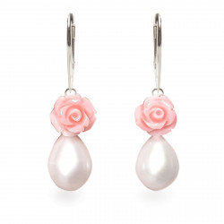 Perlové visací náušnice s korálovou růží a perlami, stříbro 925/1000