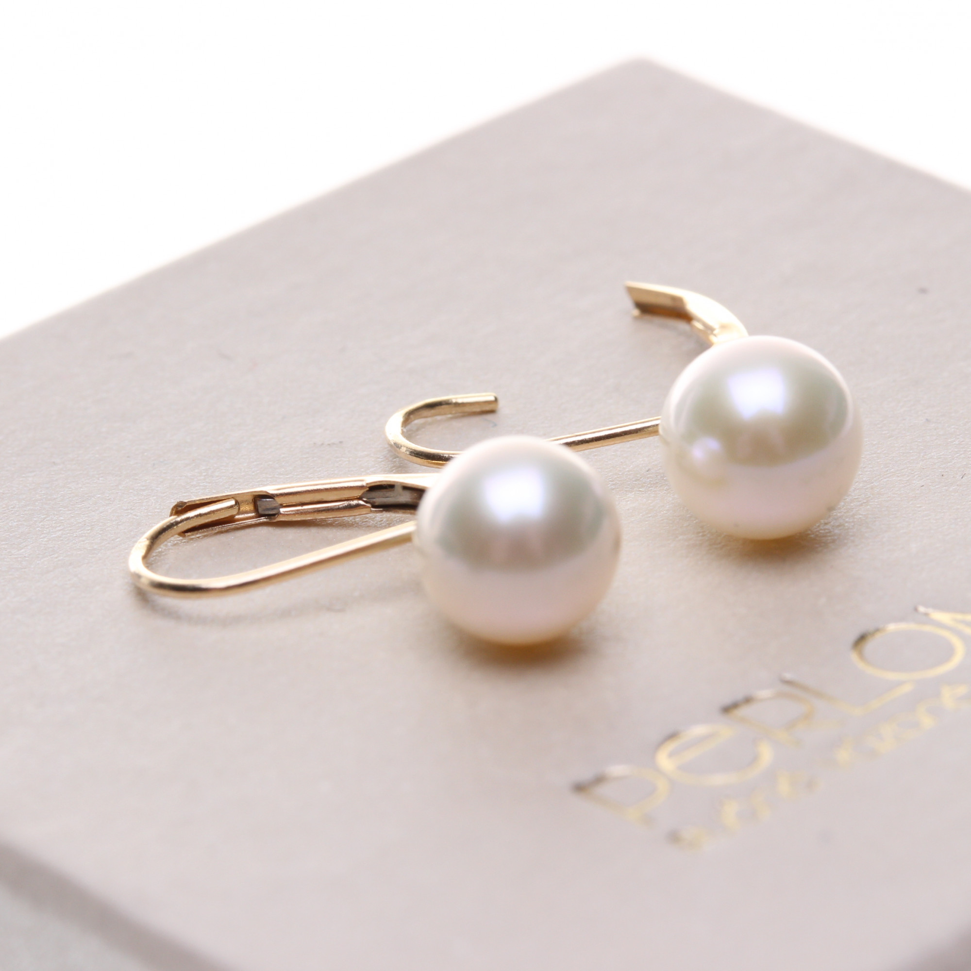 Jedná se o jeden kus visací náušnice ze 14 karátového zlata, osazený kultivovanou sladkovodní perlou o průměru 7–7,5 mm. Perla je jakosti AAA, má ideálně kulatý tvar, hladký povrch a vysoký, hedvábný lesk. Barevně se pohybuje v odstínu bílé až jemně smetanové. U přírodních perel prosím berte v potaz, že se jejich odstín může u jednotlivých kusů mírně lišit.