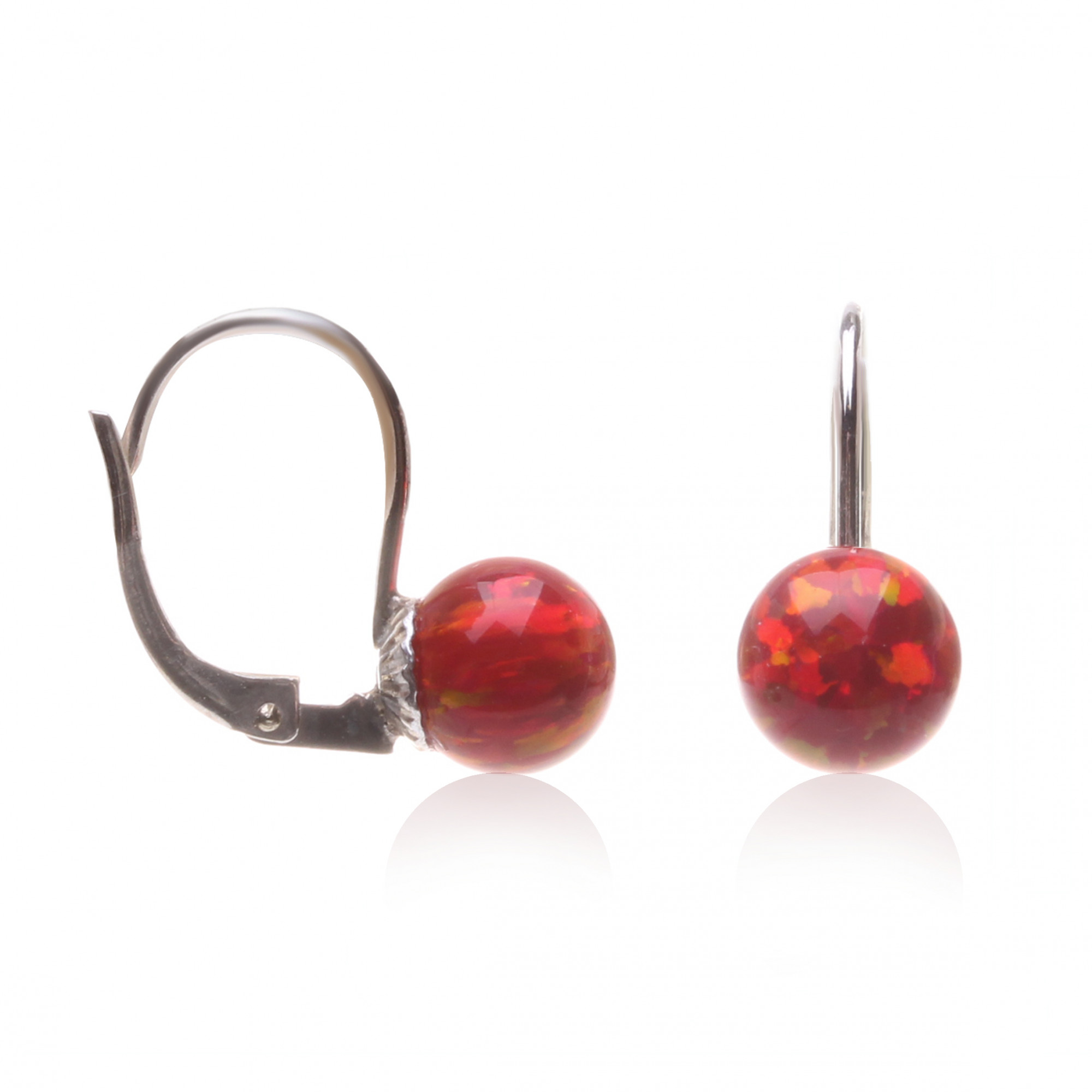 Elegantní stříbrné visací náušnice jsou osazené párem syntetických opálů v sytě červené barvě. Opály mají krásnou kresbu a odlesky. Kuličky jsou o průměru 7 mm. Délka náušnic je celkem 2 cm. Hmotnost páru náušnic je 1,5 gramu. Náušnice dostanete v dárkové papírové krabičce s logem perlomatu a s certifikátem.
